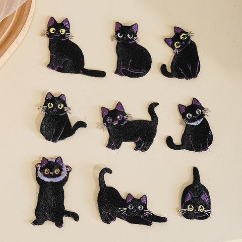 Modern Cartoon Purple Cat Embroidered Patch Three-Dimensional PVC Fabric for Garment Stain Repair DIY Iron-On Patch