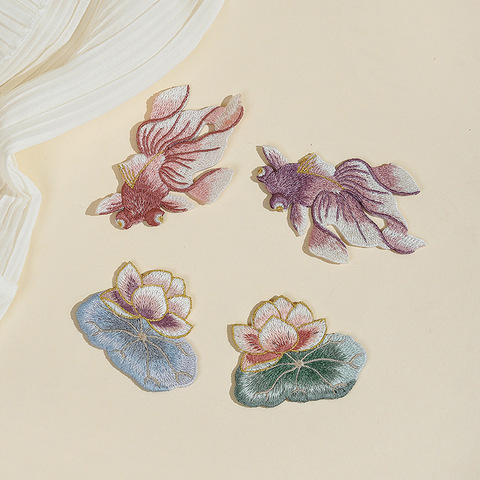 3D Goldfish Lotus Embroidered Patch Eco-Friendly DIY Cartoon Hanfu Bag Iron-on for Garment Repair Heart Shape on Canvas Fabric