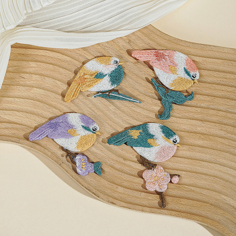 رقعة مطرزة ثلاثية الأبعاد وصديقة للأربعة طيور صغيرة وصديقة للحديد للملابس التي تصنعها بنفسك ، حقيبة هانفو وقماش قماشي ، حديد للقماش الصناعي